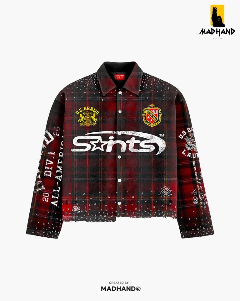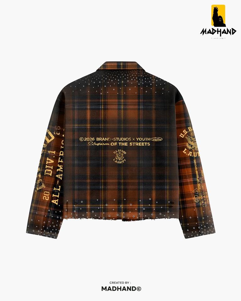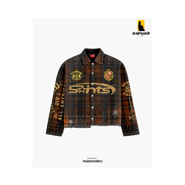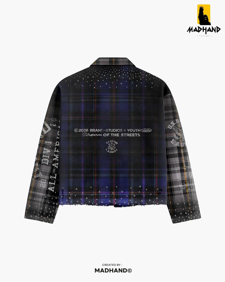 Custom Rhinestone Plaid Flannel Shirt | Distressed Oversized Checkered Jacket | Premium Streetwear Vintage Button Manufacturer