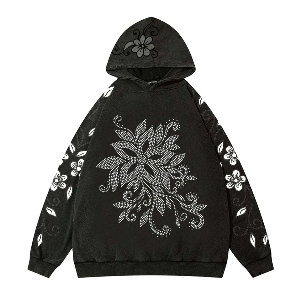 Custom Rhinestone Unisex Fleece Pullover Hoodie Sparkling Crystal Design 100% Cotton Eco-Friendly Winter Streetwear Bulk