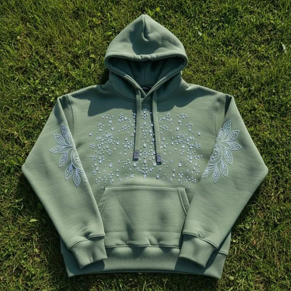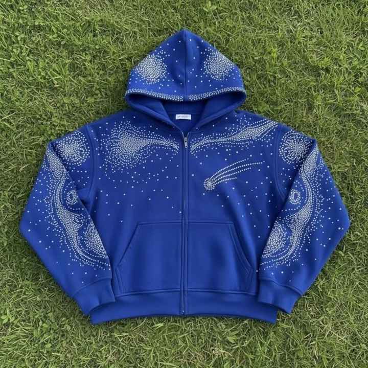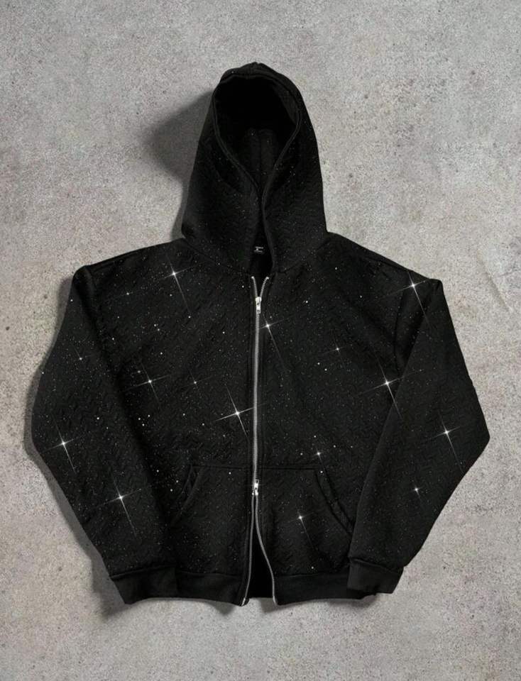 Custom Rhinestone Zip Up Hoodie Men Women Streetwear Crystal Embroidery Hooded Sweatshirt Full Zip Casual Jacket