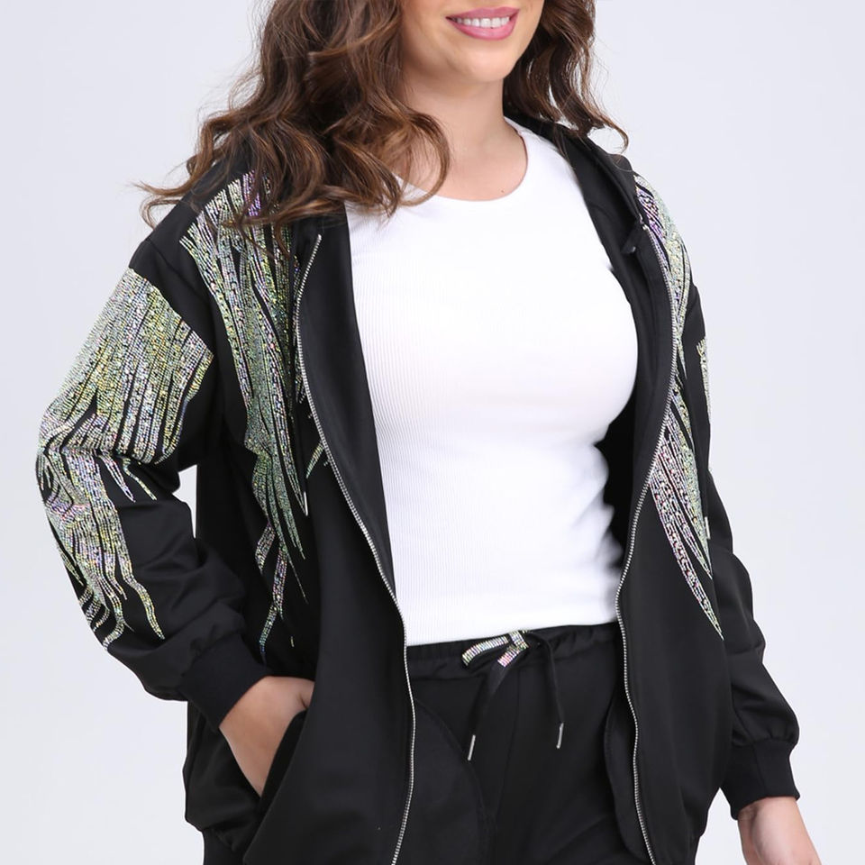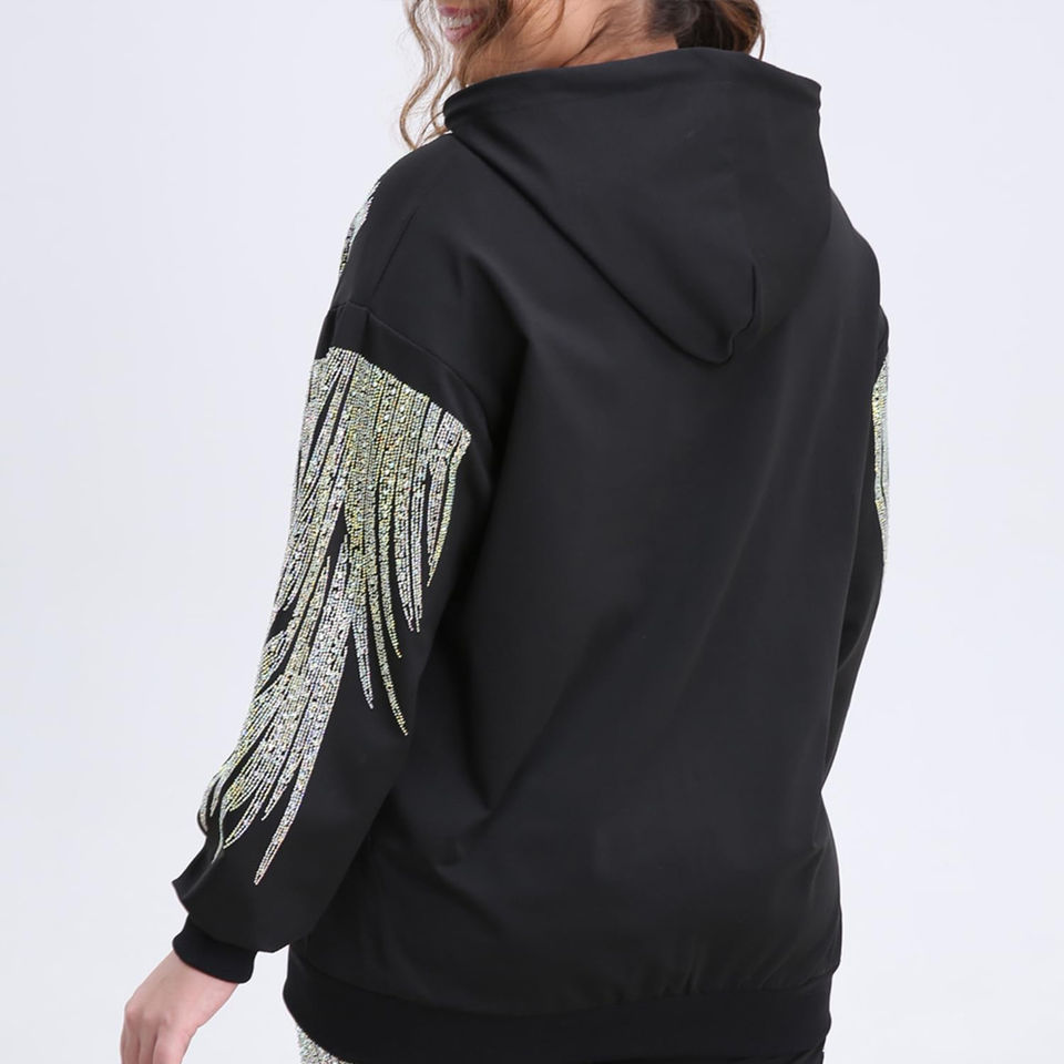 Breathable Outdoor Casual Wear Women Rhinestone Hoodie