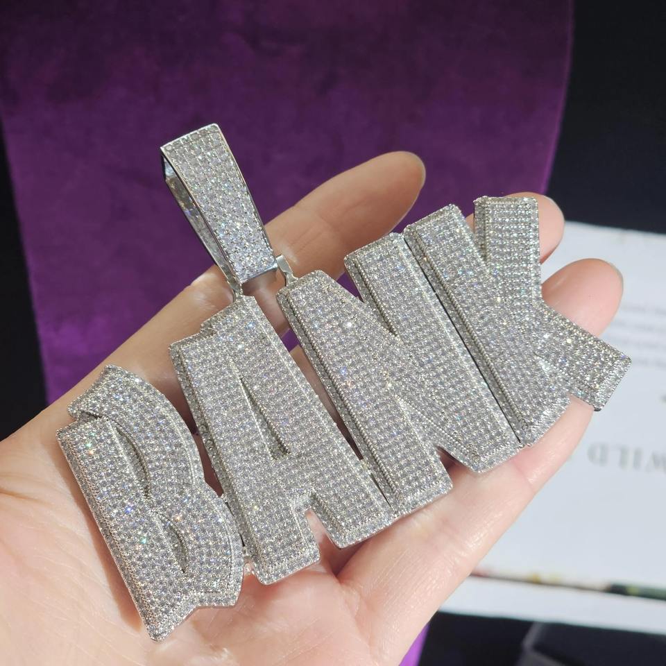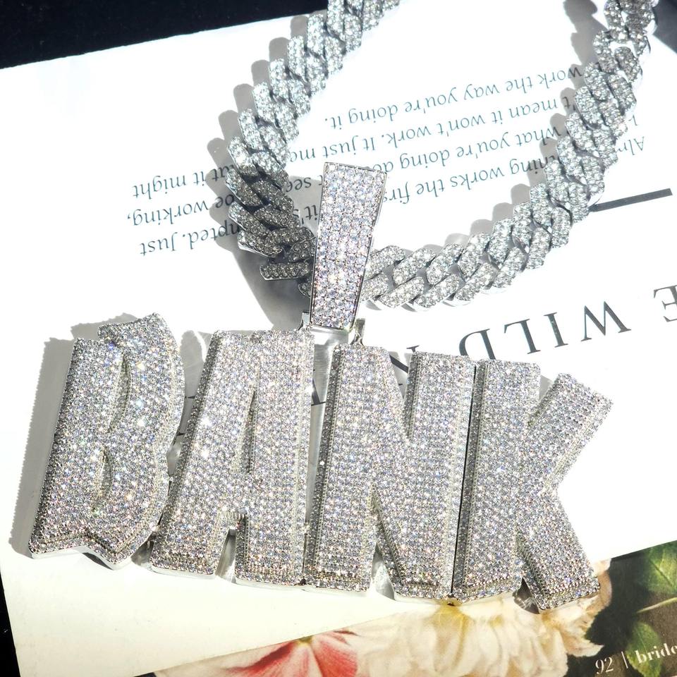 Custom Rhodium Iced Name Necklace Cuban Chain Letter Charm Pendant Hip Hop Jewelry for Engagement Party Gifts Online India