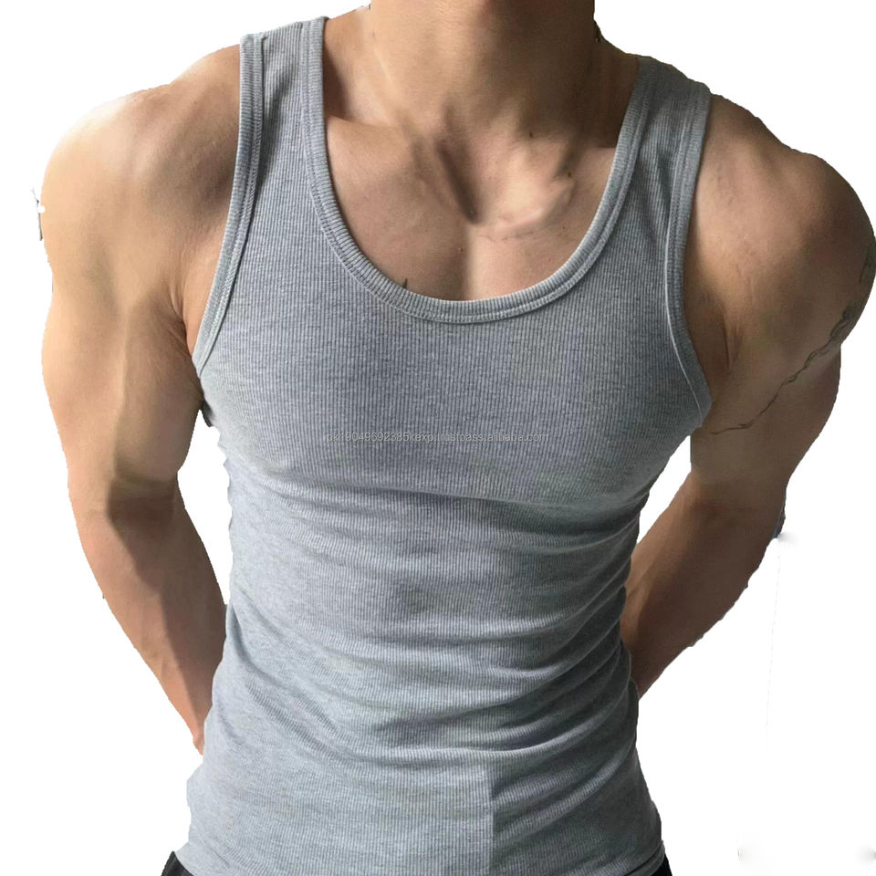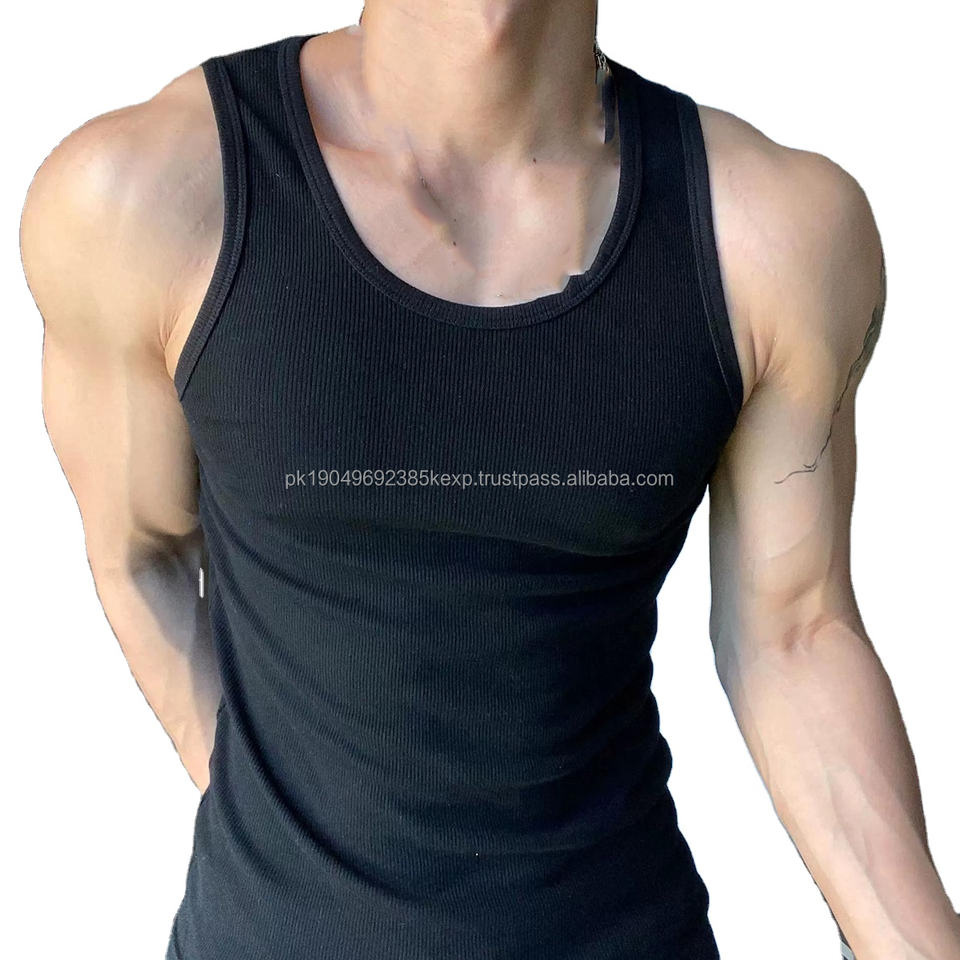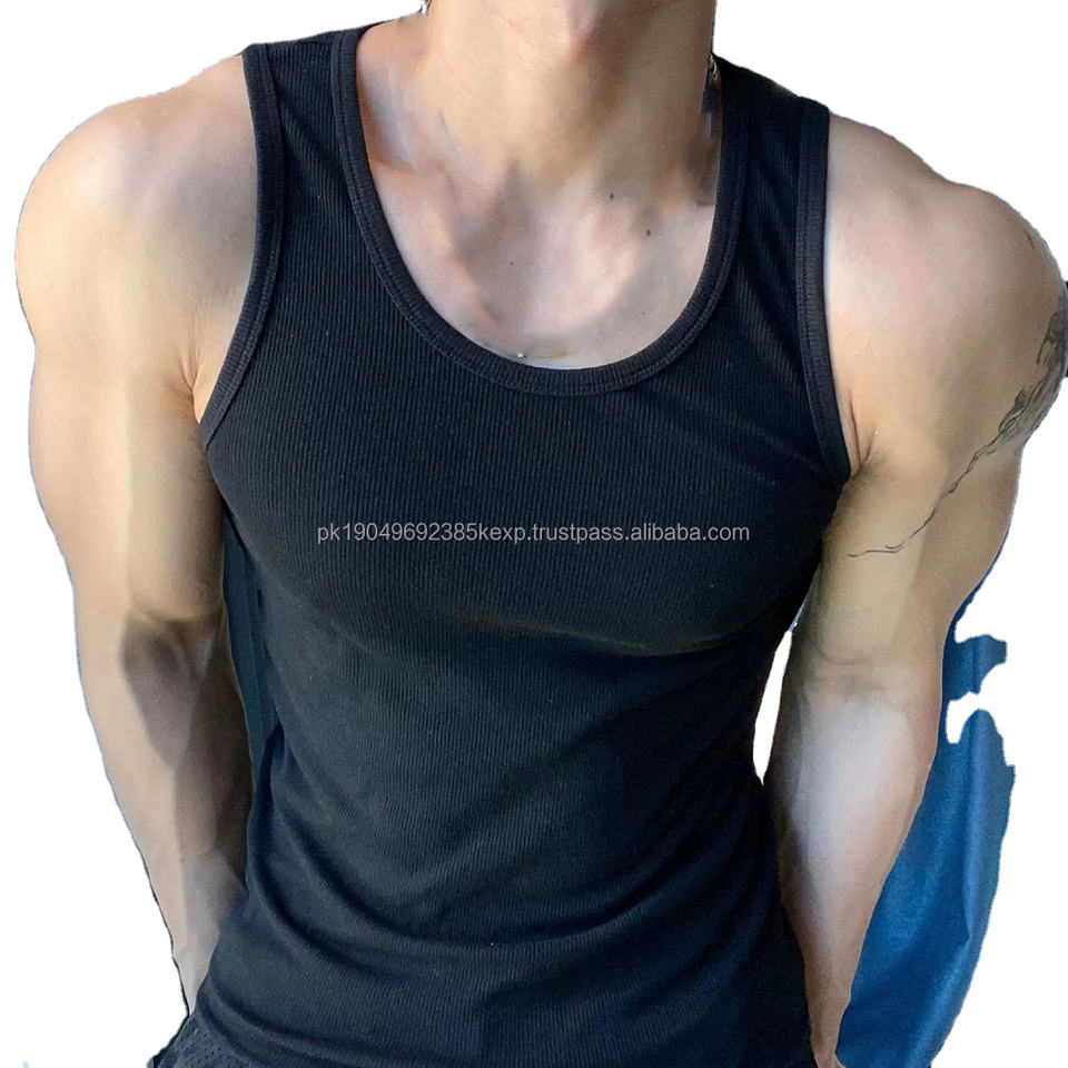 Custom Rib Tank Top High Quality Muscle Fitted Cotton Ribbed Tank Top Men Gym Workout Streetwear Sleeveless T-Shirt