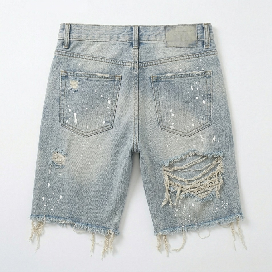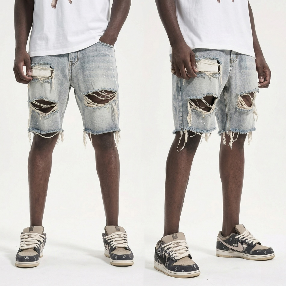 Custom Ripped Men Denim Shorts Hot Supplier Vintage Acid Wash Streetwear Jean Shorts Distressed Hip Hop Loose Shorts TKAN835