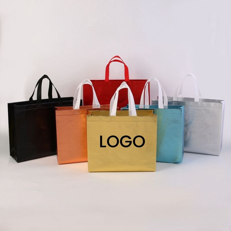 Custom Rose Gold Shiny Glossy Metallic Laminated Non Woven Tote Reusable Portable Gift Shopping Bag