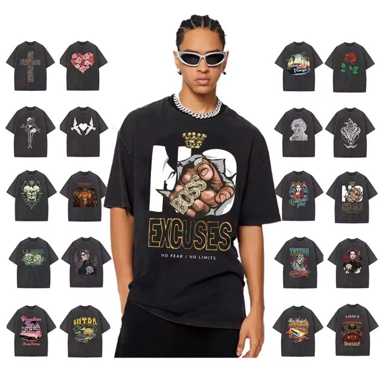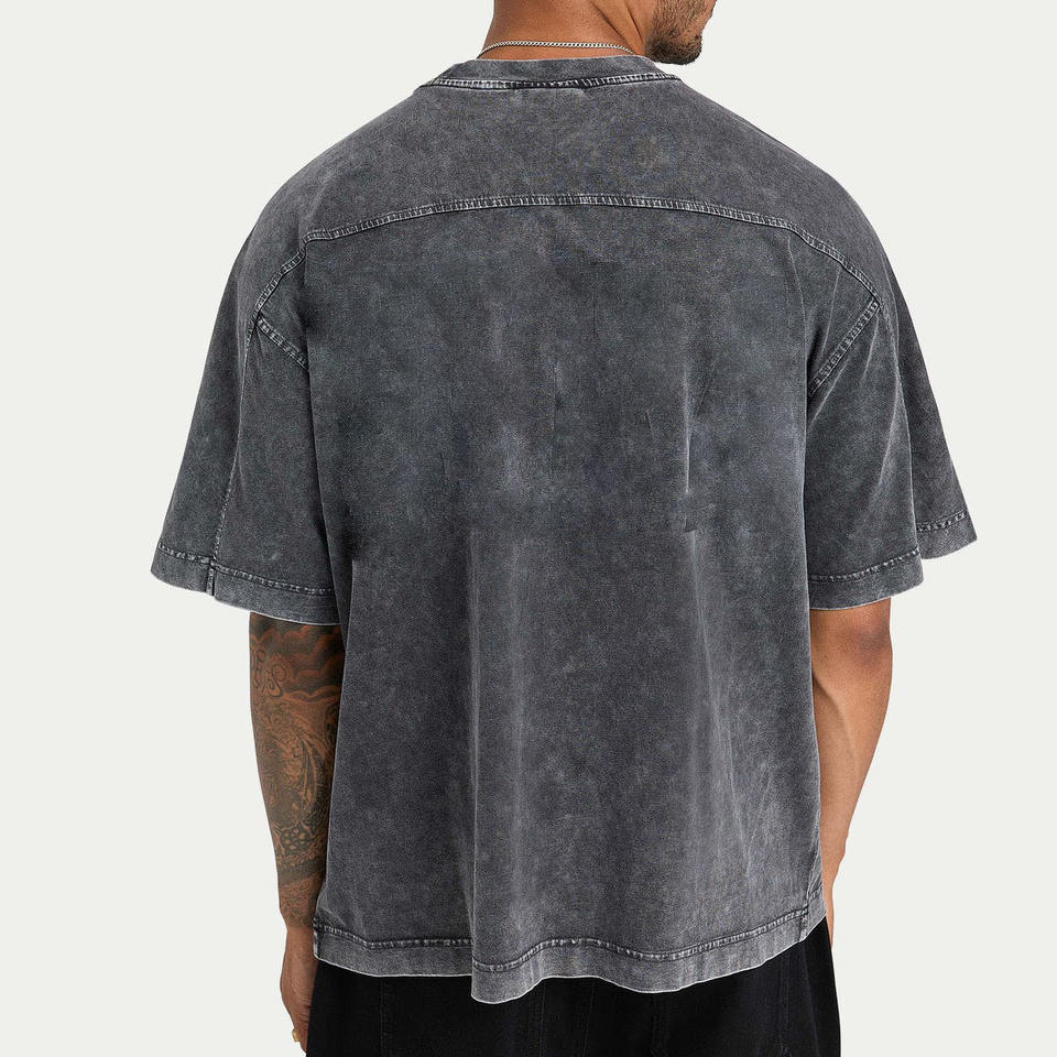 Custom Round Neck Washed T-shirt Drop Shoulder Streetwear Oversized Tshirt Heavyweight Cotton Acid Vintage Wash T-shirt for men