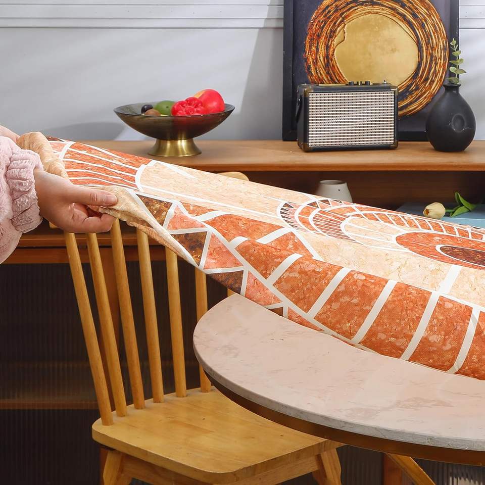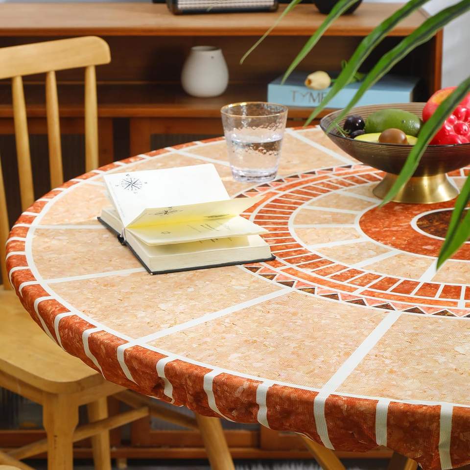 Custom Round Table Cloth Elastic Edge Waterproof Wipeable Washable Fitted Tablecloths for Round Tables