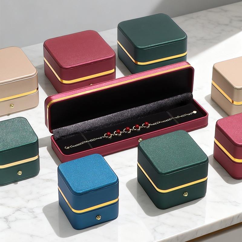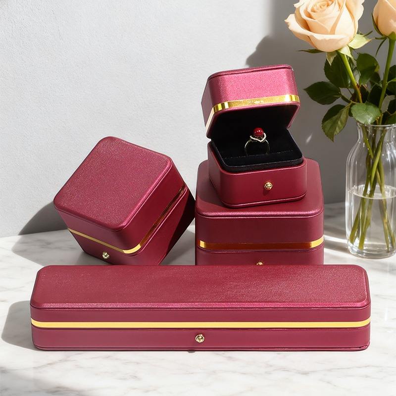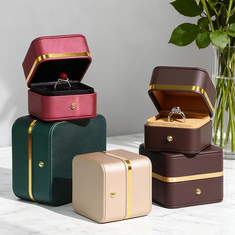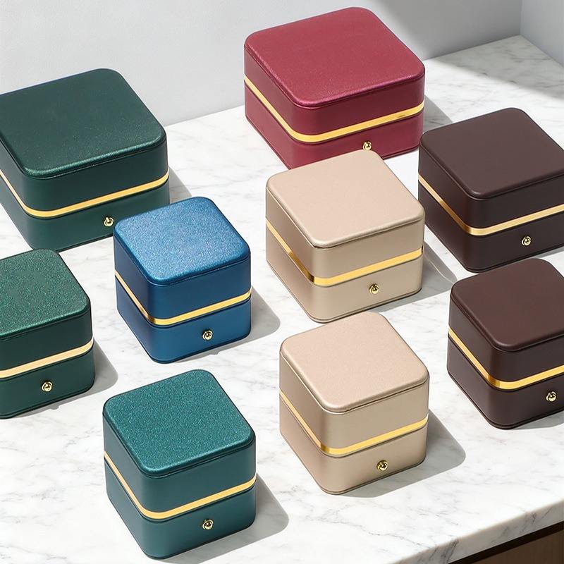 Custom Rounded PU leather gold border jewelry box, ring necklace pendant, earring bracelet, jewelry gift packaging box