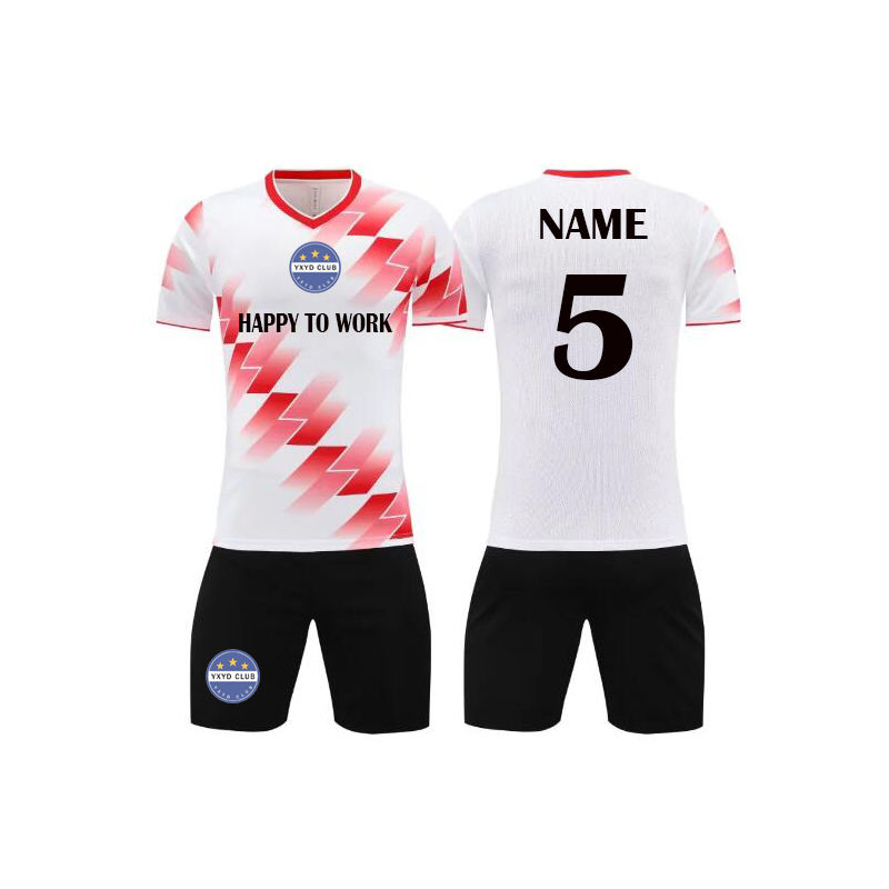 Custom Royal Blue Printed Football Uniform Thailand Breathable Soccer Jersey 100% Polyester V-neck Half Sleeve Stretch Quick Dry