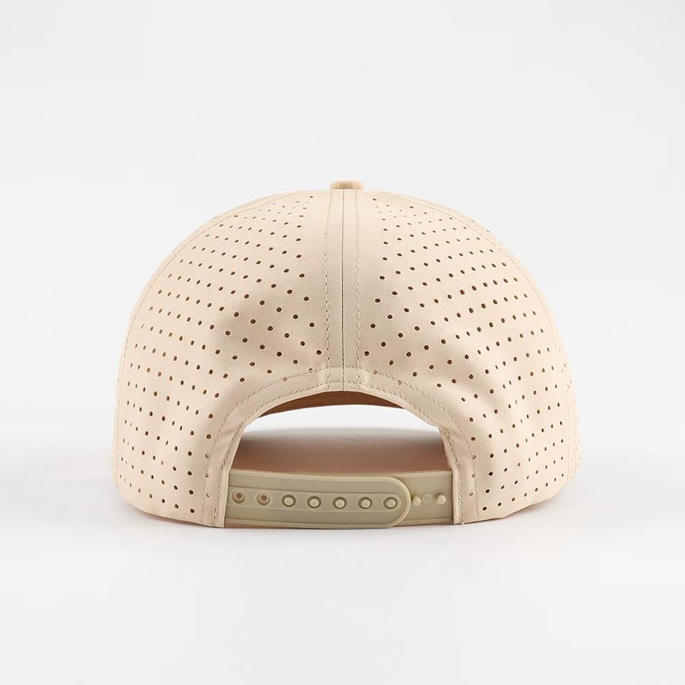 Custom Rubber Patch Logo 5 Panel Baseball Hat Waterproof Sport Cap Perforated Golf Hat Laser Cutting Hole Rope Golf Rope Hat