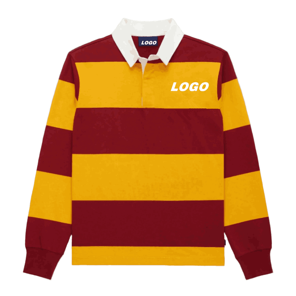 Custom Rugby Jersey Sewn Striped Mens Rugby Polo Embroidery Long Sleeves Cotton Rugby Polo Long Sleeve With Logo