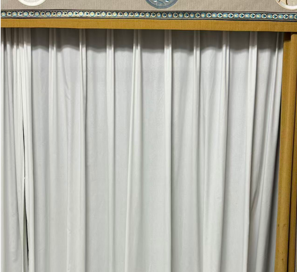 Custom S-wave sheer motorized curtains for an elegant backdrop featuring long-sleeved drapes suitable for hotels and weddings
