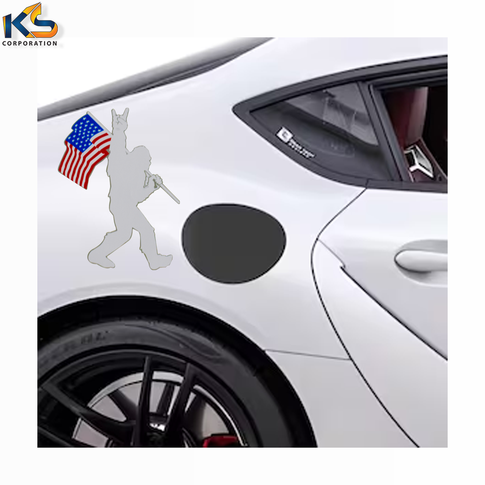 Custom Sasquatch Bigfoot Rock American Flag Vinyl Sticker Decal 4x5 Inch UV Resistant Durable Car Window & Wall Decor