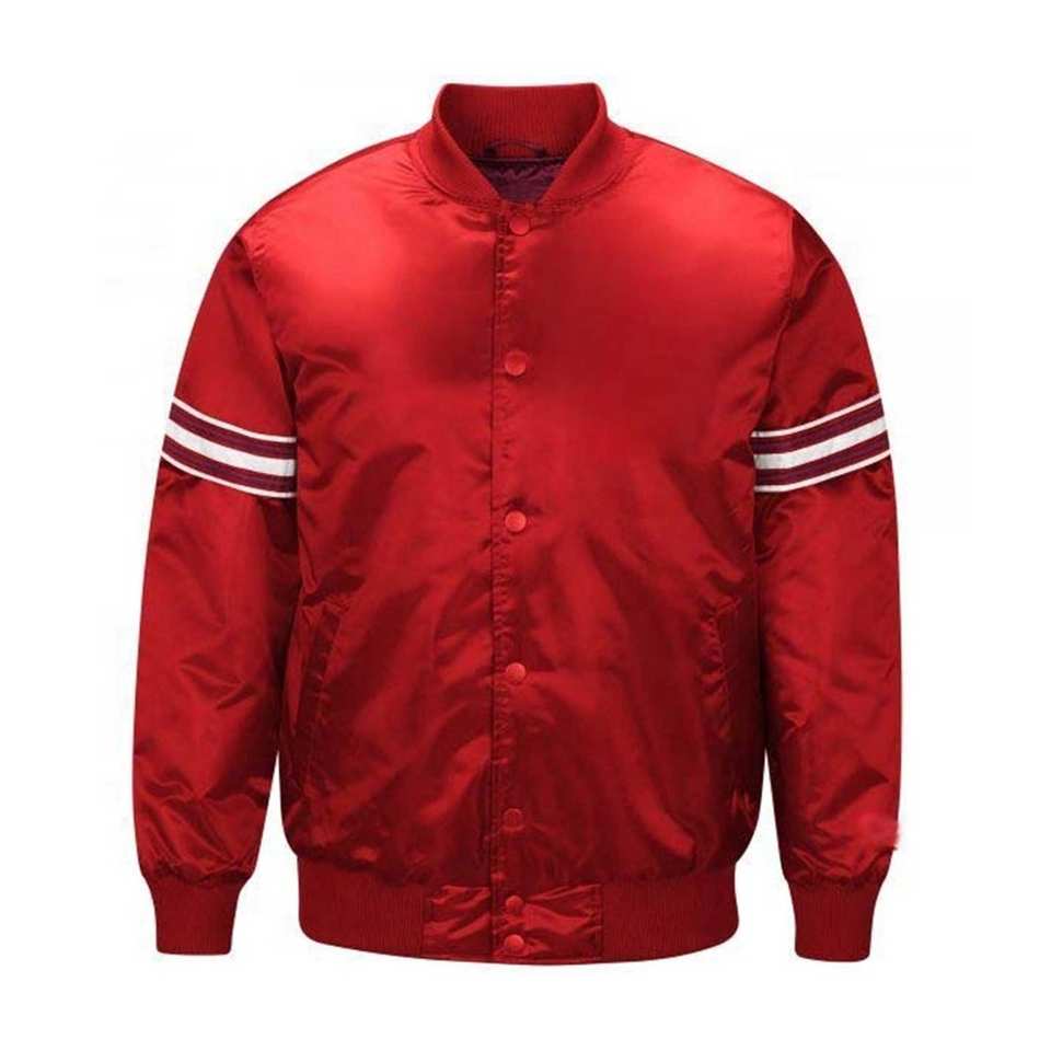 Custom Satin Jacket Men | Embroidered Patch Varsity Coach Jacket | Wholesale OEM Streetwear Bomber Satin Jacket Manufacturer