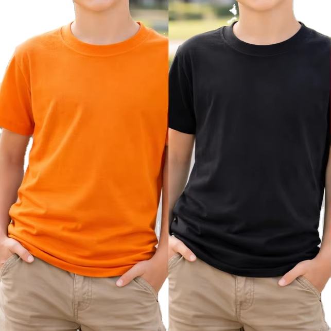 Custom School Logo Printed Front Back Solid Color Short Sleeve T-Shirt Men 180gram O-Neck Regular Hem 100% Cotton Eco-Friendly