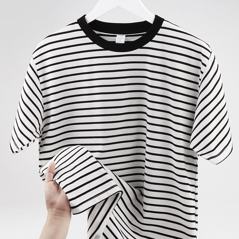 Custom Screen Print 100% Cotton Manufacturer Striped Unisex Hip Hop Blank Oversized Heavyweight Streetwear T-shirt for men