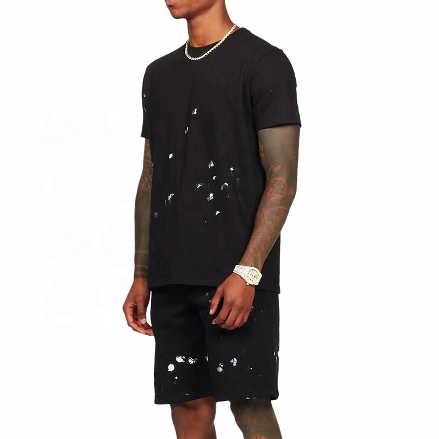 Custom Screen Print Unisex Sweatsuit Short Sleeve Cotton Men 2 Piece Summer Short Set Plain T Shirt Shorts Set
