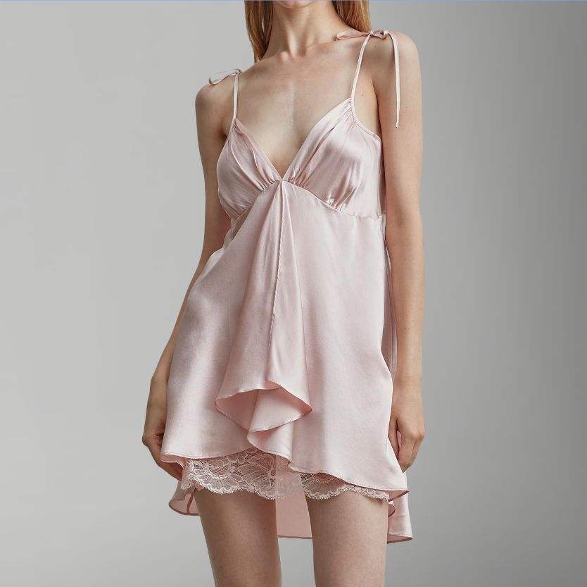 Custom Sexy Women Sleepwear Nightgowns Sik Satin Mesh Lace Sleep Dress Hot Sexy Transparent Lingerie Night Dress for Woman