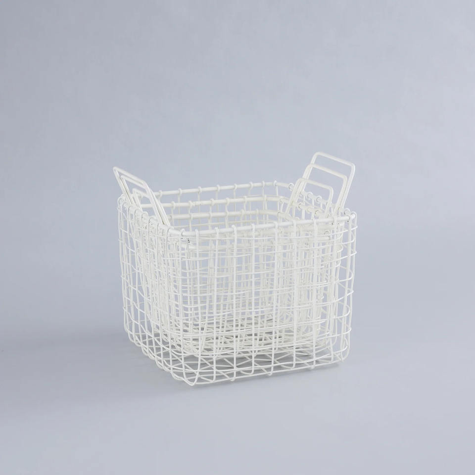Custom Shape Metal Wire Storage Basket in Black Color Use for Home and Kitchen Counter Top Basket with Handles
