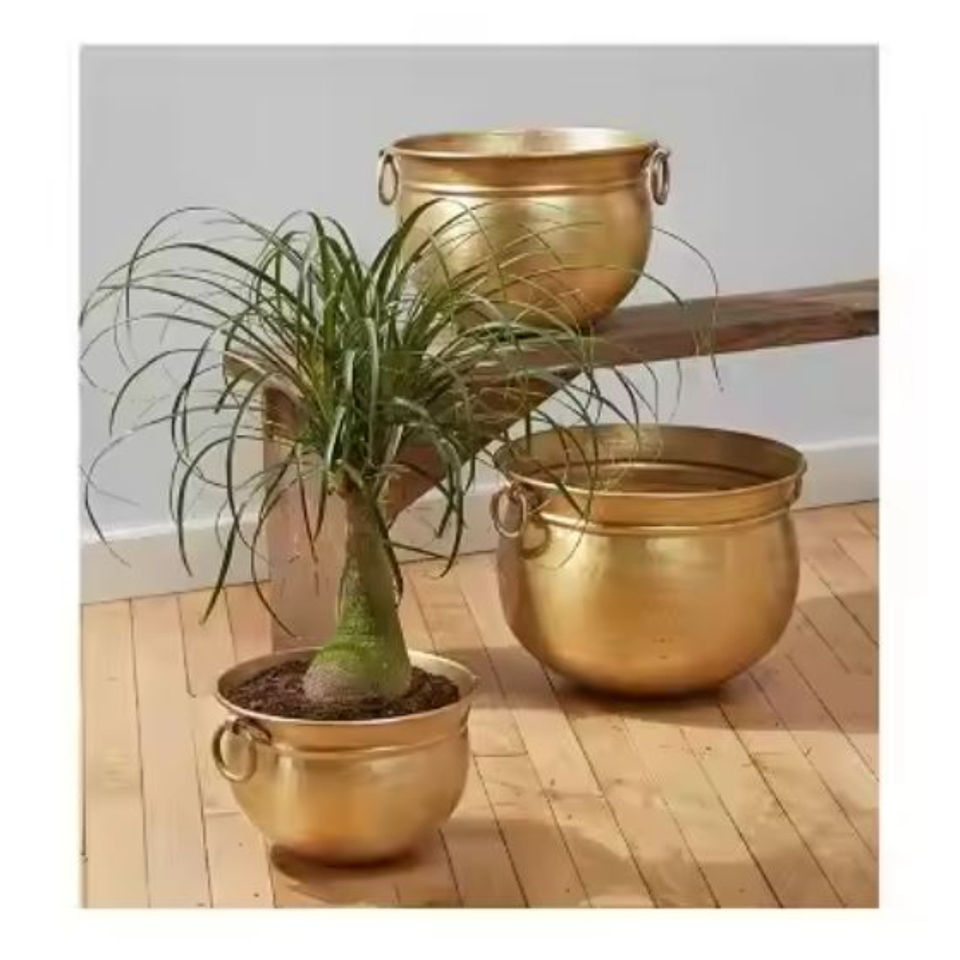 Custom Shape Plants Pot Gold Metal Planter With Iron Stand Modern Flower Pot Herbs Container Set of 2 in Attractive Price
