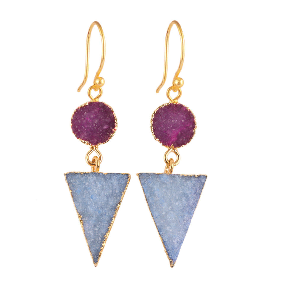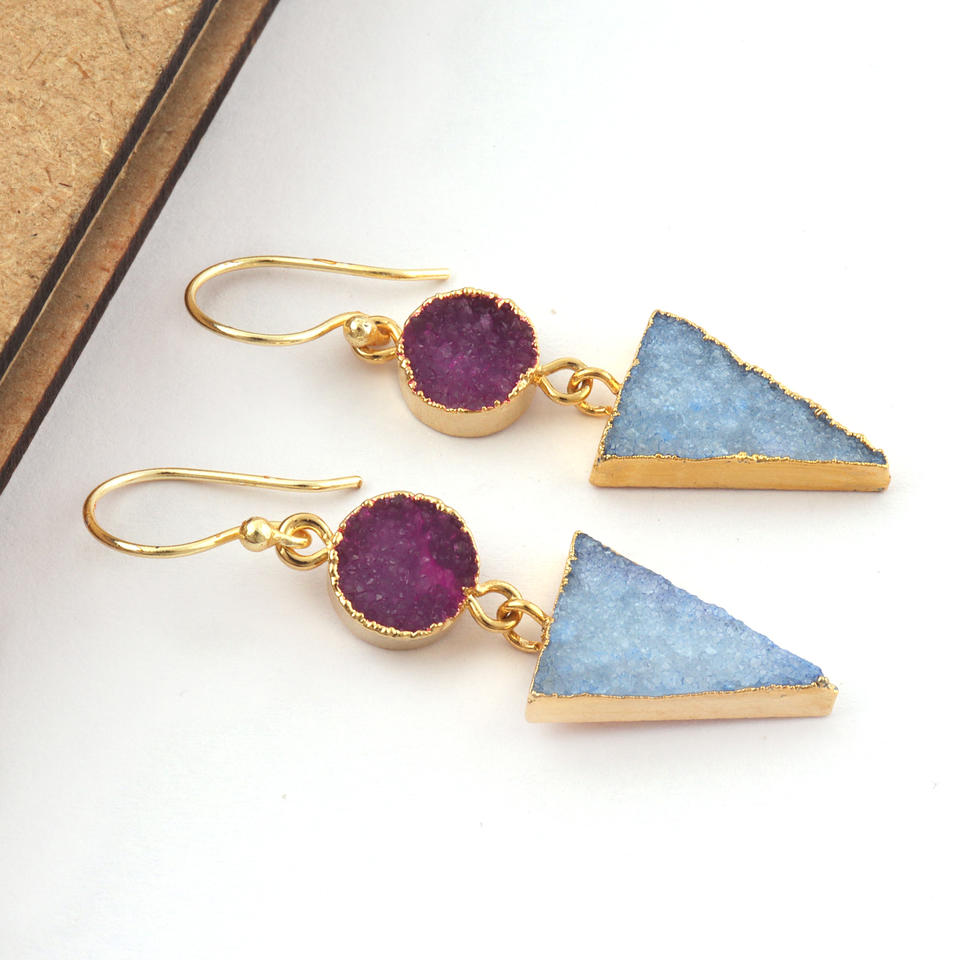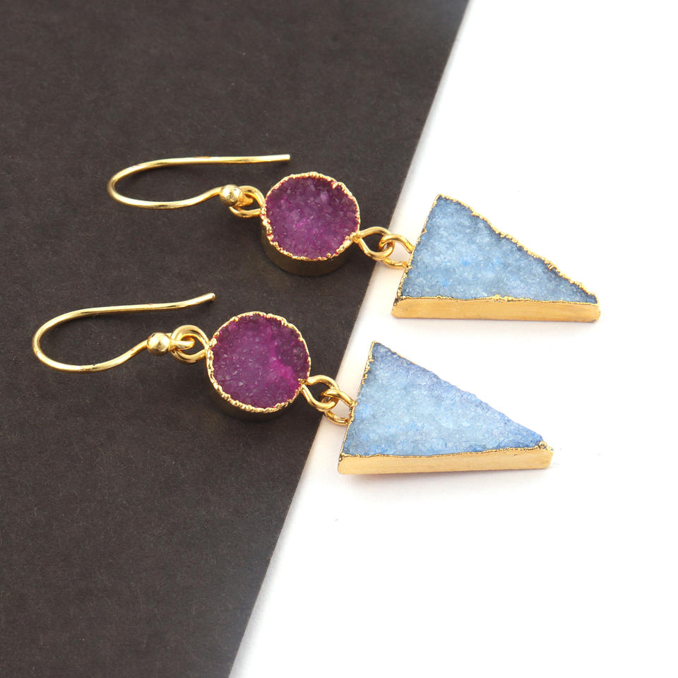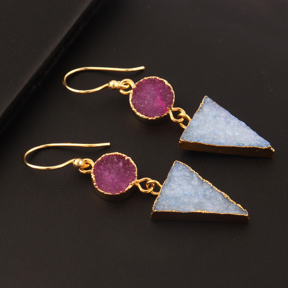 Custom Shape Statement Earrings Genuine Crystal Double Color Sugar Druzy Dangle Earring 18k Gold Plated Wedding Gifts Earrings