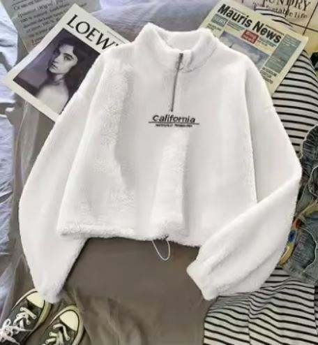 Custom Sherpa Fleece Thick Crop Top Hoodie for Women Korean Style Casual Short Length Autumn Winter Half Zipper Warm Sweatshirts