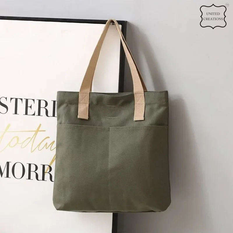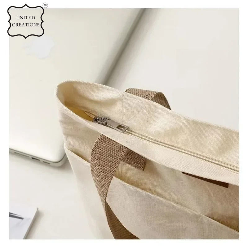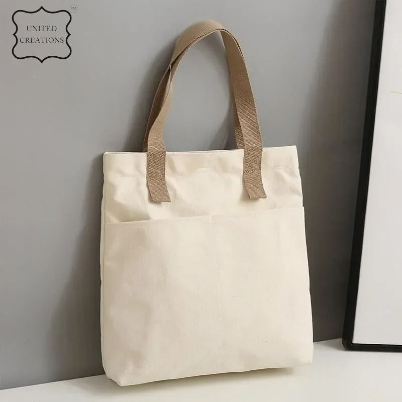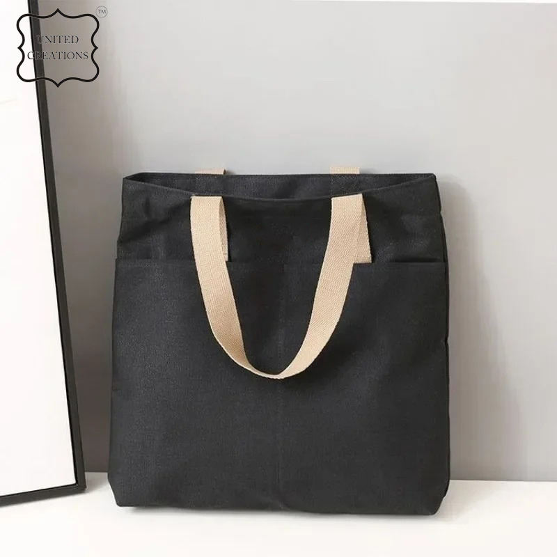 Custom Shipping Cotton Canvas Tote Bag With Pocket and Zipper Women's Tote Bags Fashion Organic Shoulder Tote Bag