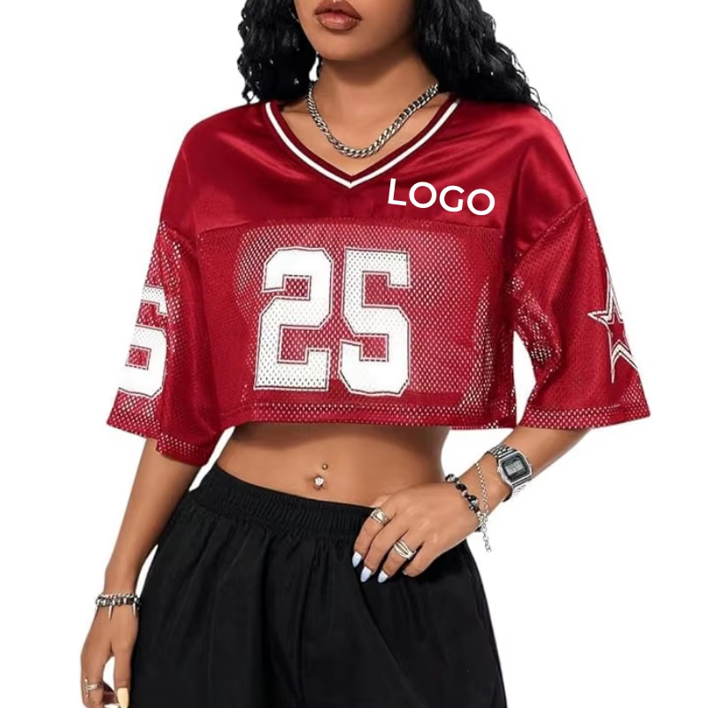 Custom Short Sleeve American Football Jersey Trendy Streetwear Printed Logo Embroidery Design Mesh Crop Fashion Football Shirt