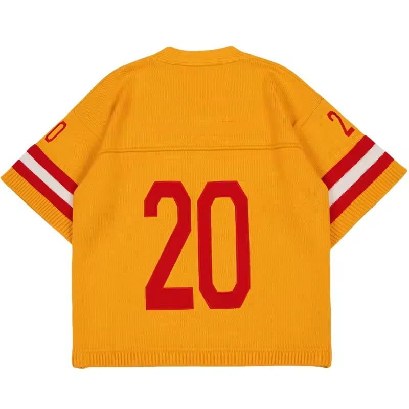 Custom Short Sleeve Pullover Streetwear Oversized Boxy Football Cotton Sweater Jumper Knitted Hockey Jersey Sweater