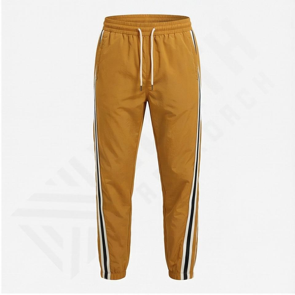 Custom Side Zip Open Wide Leg Nylon Track Pants Patchwork Elastic Waistband Mens Stacked Pants Jogger Winter Trousers Men