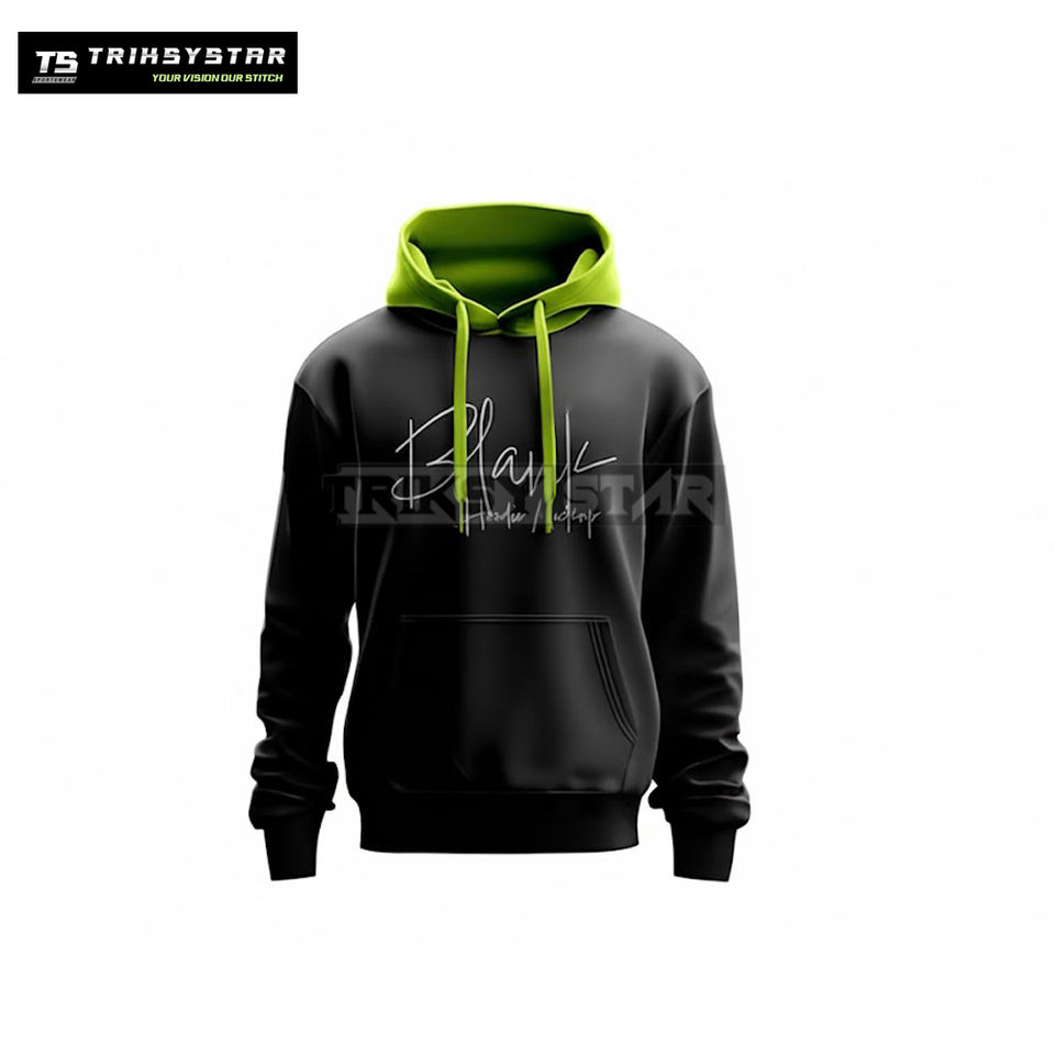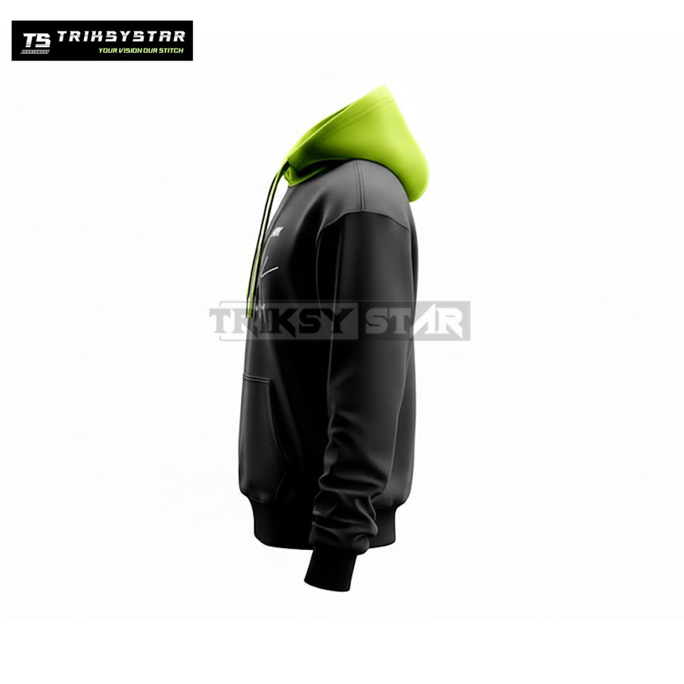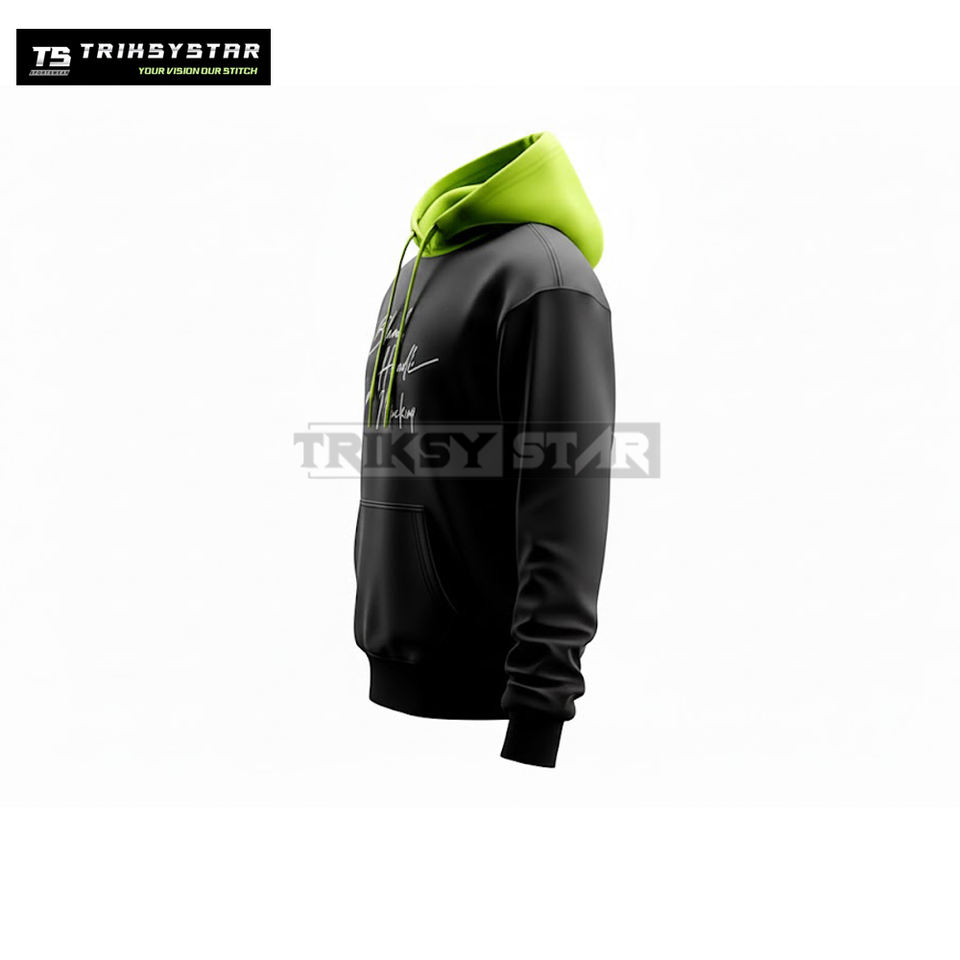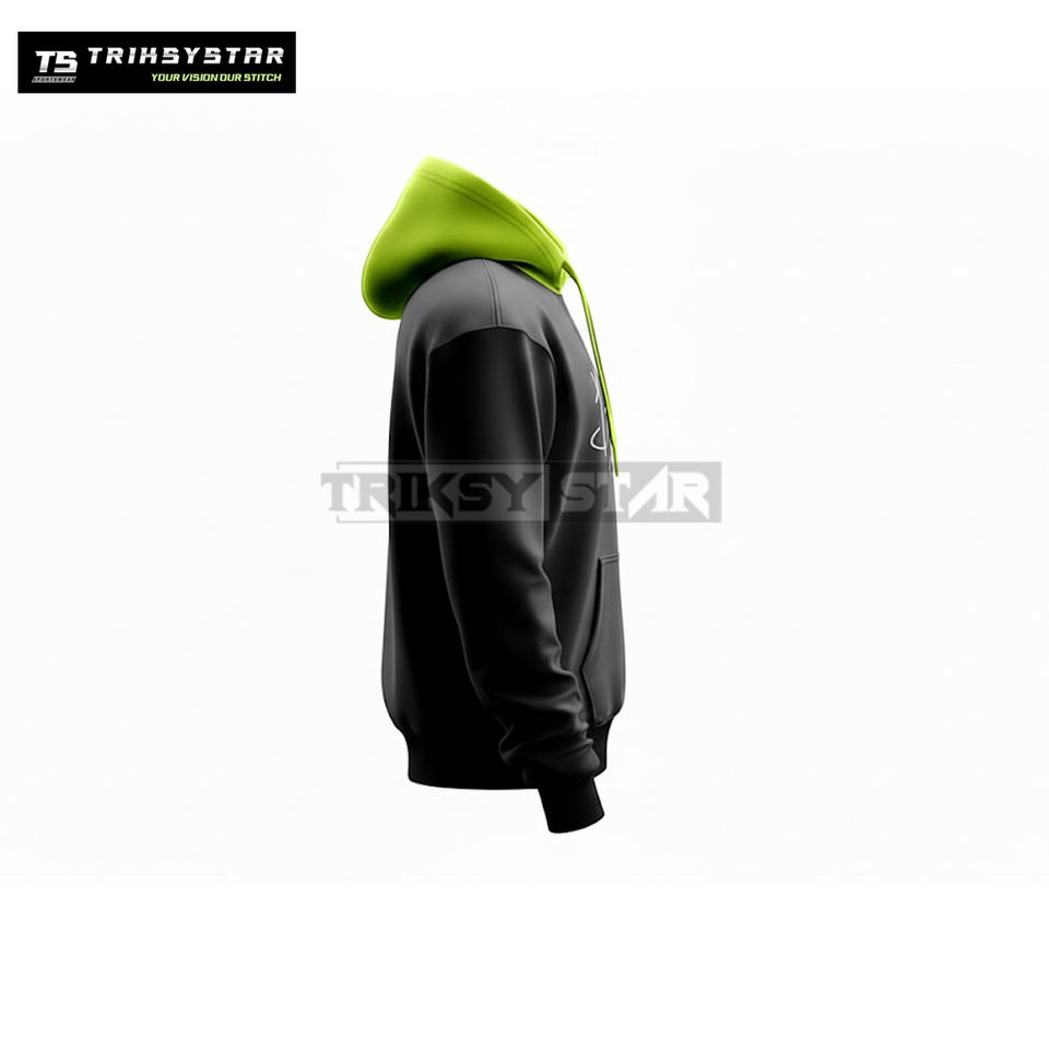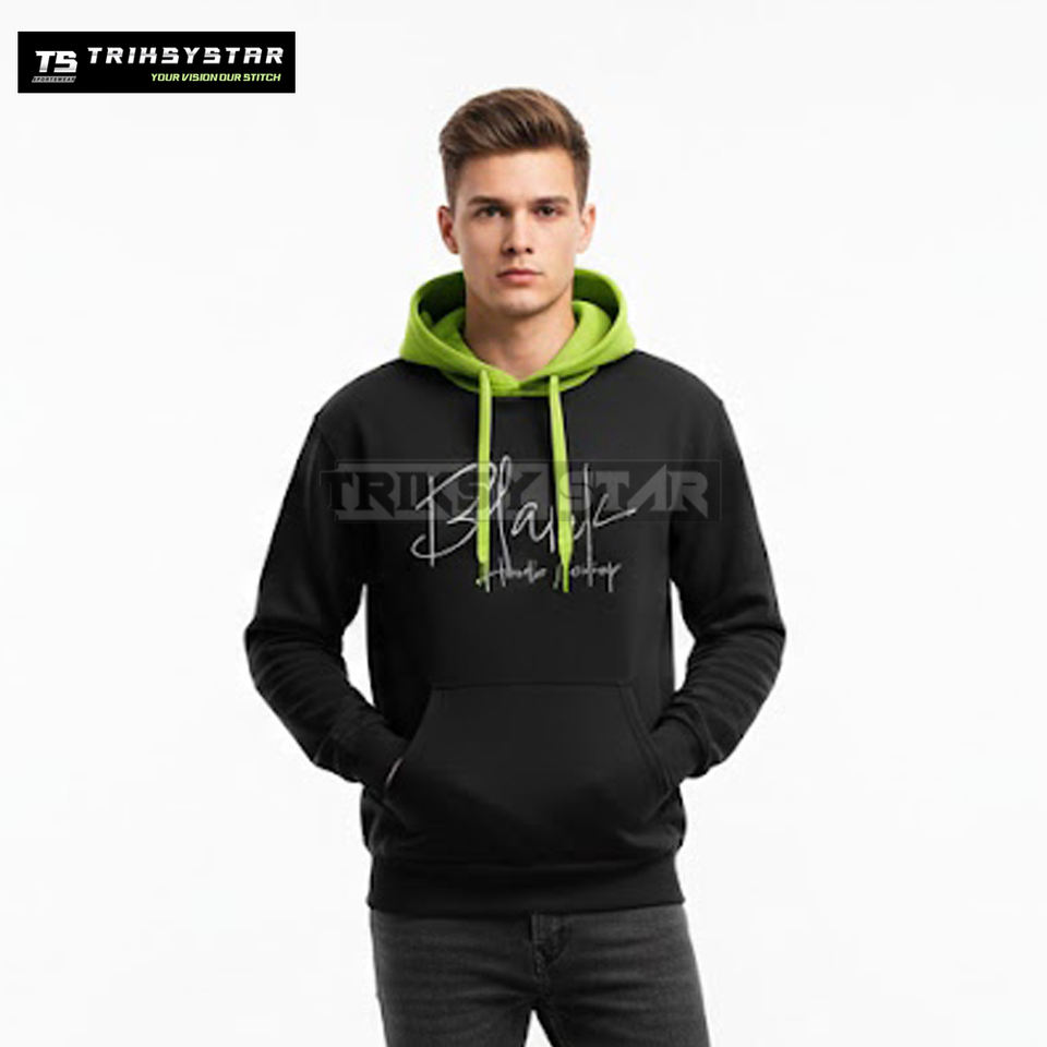 Custom Signature Print Hoodies Bulk Order Black Pullover Sweatshirt with Bright Inner Hood OEM ODM Manufacturer by Triksy Star