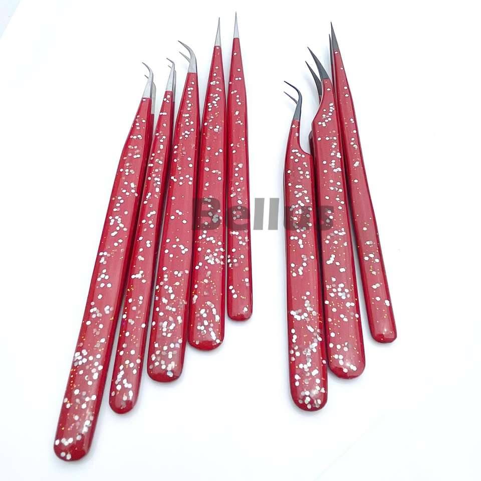 Custom Silver 45 90 Degree Fiber Tip Tweezers for Volume Lash Extensions Professional Eyelash Applicator with Logo