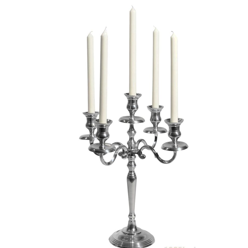 Custom Silver 5 Arm Aluminum Metal Candelabra Candle Holder Tall Medium Size Wedding Aisle Table Decor Event Centerpiece Taper