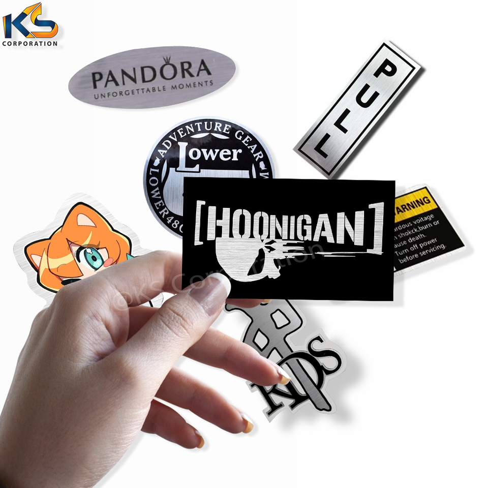 Custom Silver Brushed Adhesive Sticker Self-Adhesive and Waterproof with UV Printing for Push and Pull Label Printing