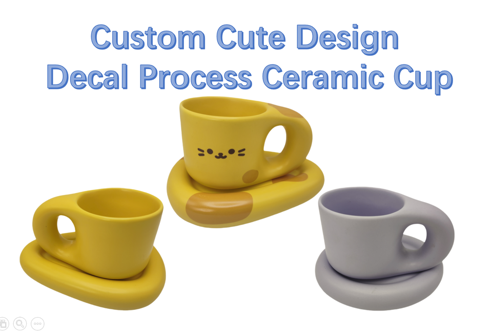 Custom Simple Matte Fat Belly Cute Big Handle 300Ml Coffee Cup Set Ceramic Tea Cup Set Breakfast Cup Ceramic Mug With Tray