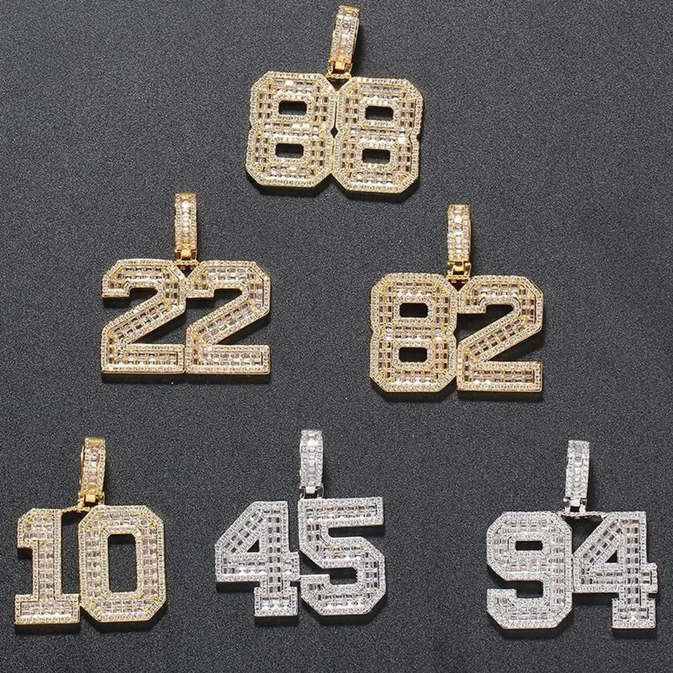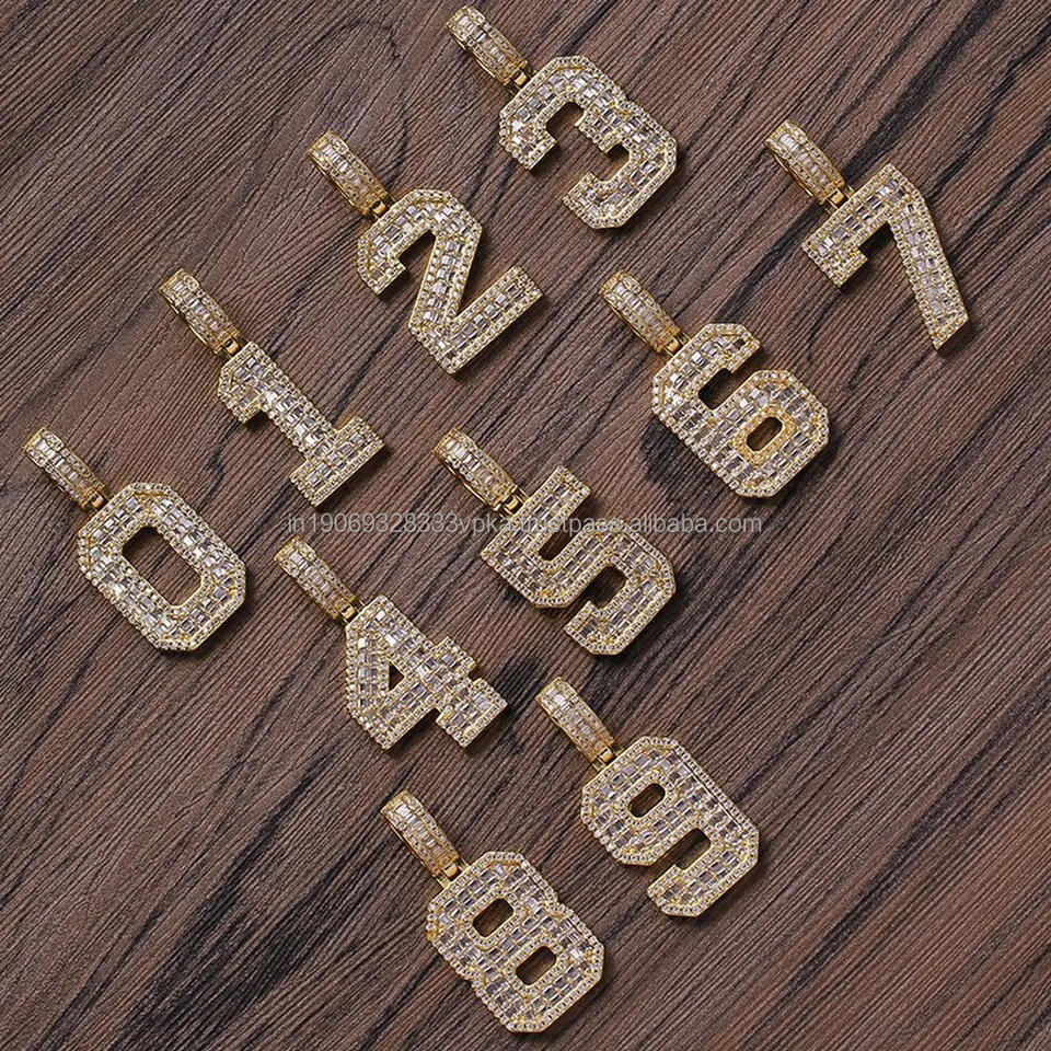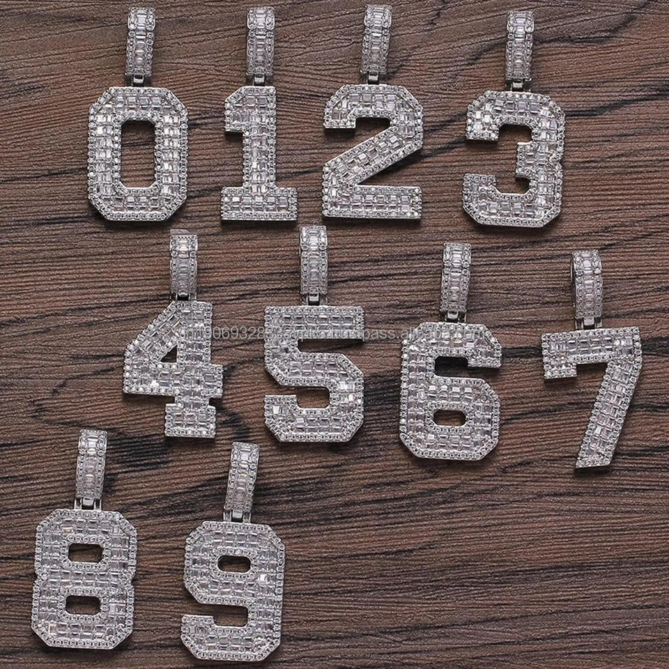 Custom Simulated Diamond Number Charm Pendant Hip Hop Style Initial Numerical Iced 0-9 Big Numbers Silver Plated Unisex Pendant