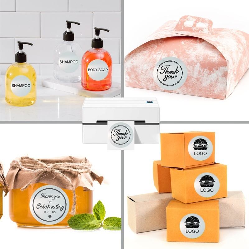 Custom Size 2 Inch Round Circle 57Mm X 30Mm Square Adhesive Pet Golden Gold Silver Holographic Thermal Sticker Labels Rolls