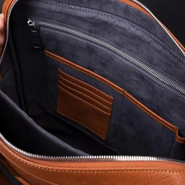 Custom Size Brown Genuine Leather Luxury Business Laptop Briefcase Unisex with Zipper Closure Lightweight