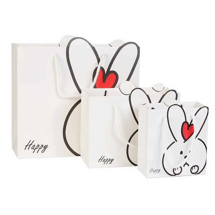 Custom Size Color Logo Cute Reusable Recyclable Biodegradable Ivory Board Paperboard Boutique Packaging Gift Bags with Handle