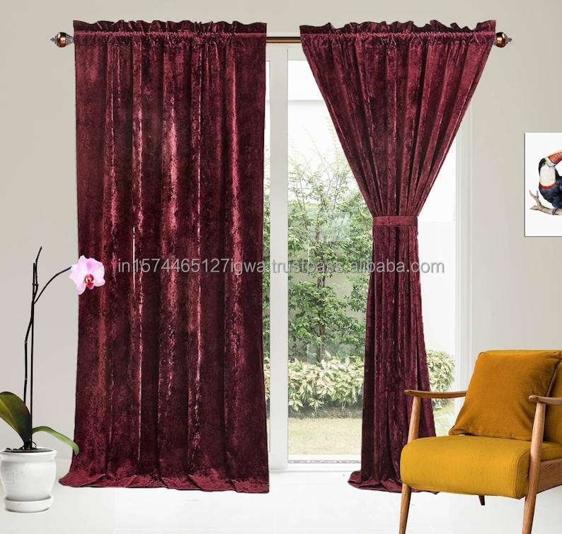 Custom Size Crushed Velvet Curtain Panels Blackout and Maroon Farmhouse Home Decor for Privacy in Living Room and Bedroom