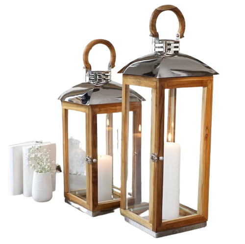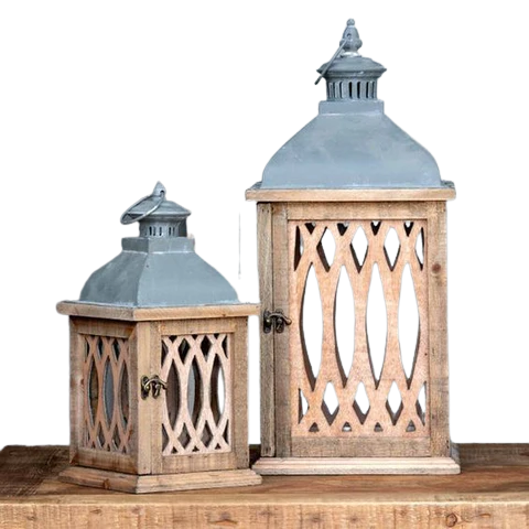 Custom Size Classic Eco-Friendly Lantern Design Tall Rustic Wooden Lantern Hurricanes Candle Holder Glass Fireplace Outdoor