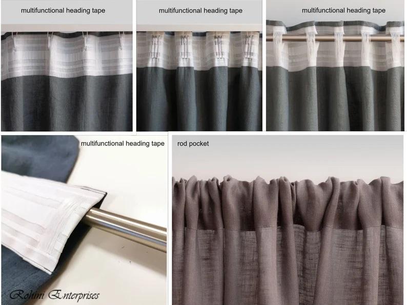 Custom Size Modern Stonewashed Linen Rod Pocket Window Curtain Panel Pom Pom Lace Extra Long Valance for Home Hotel All-Season