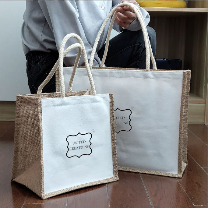 Custom Size Tote Bags Jute Beach Bag Wedding DIY Hemp Jute Shopping Bag