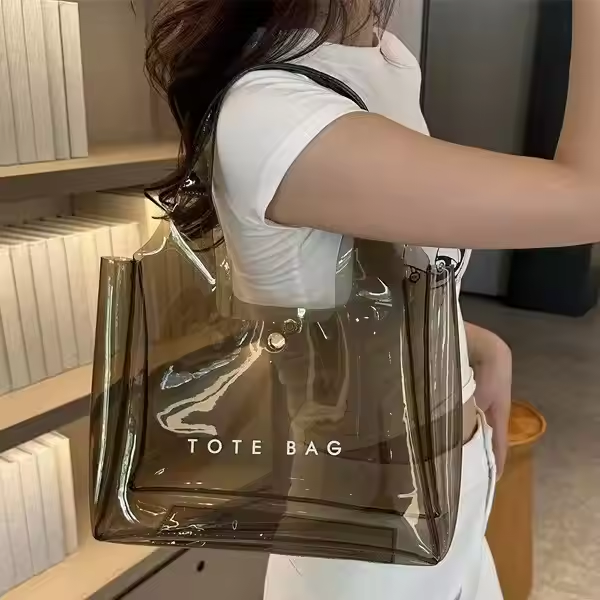 Custom Size Transparent PVC Holographic Clear Tote Bag High Quality Travel Bag with Logo for Women Handbags Outdoor Use