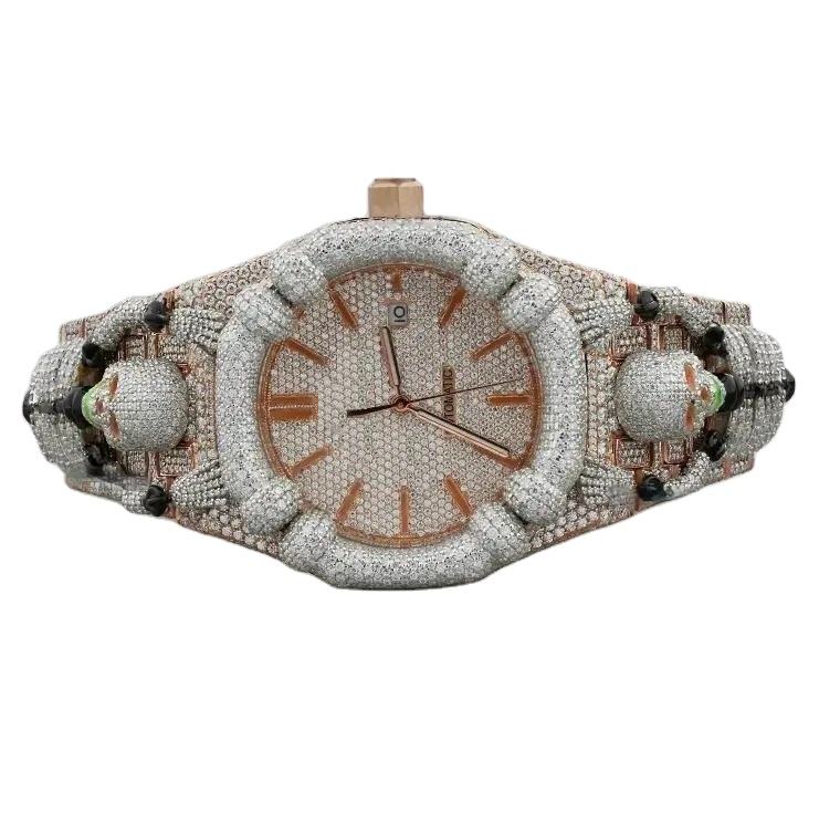 Custom Skull Full Iced Quartz Fashion Square Moissanite Diamond Two Tone Stylish Wrist Watch Bulk Buy UK Antique