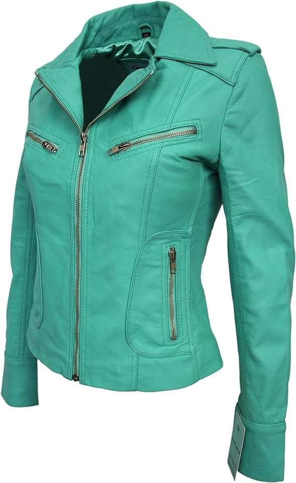 Custom Slim-Fit Women's Double Face Sheepskin Leather Biker Jacket Black Motorcycle Jacket with Woven Weave