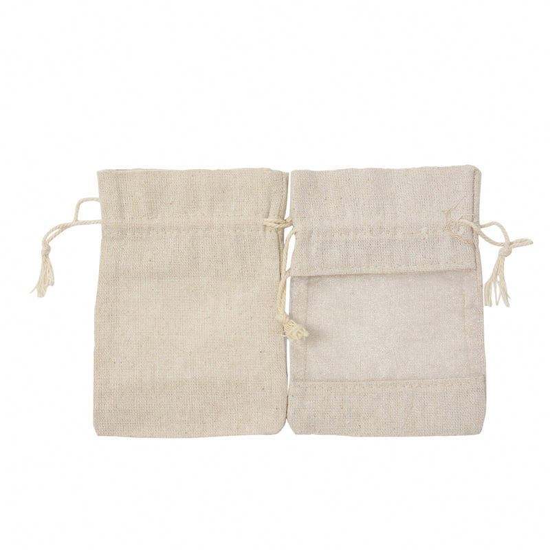 Custom Small Cotton Jute Drawstring Pouch Bag Organza Window Silk Screen Printing Recyclable Security Feature Guangdong China