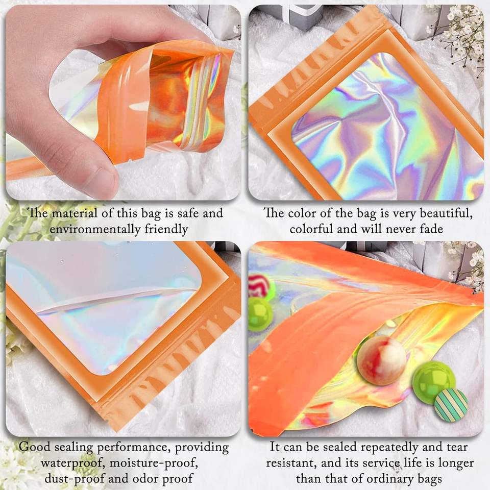 Custom Pink Clear Holographic Ziplock Pouch Small Mylar Hologram Plastic Bag with Zip Lock Custom Plastic Bags