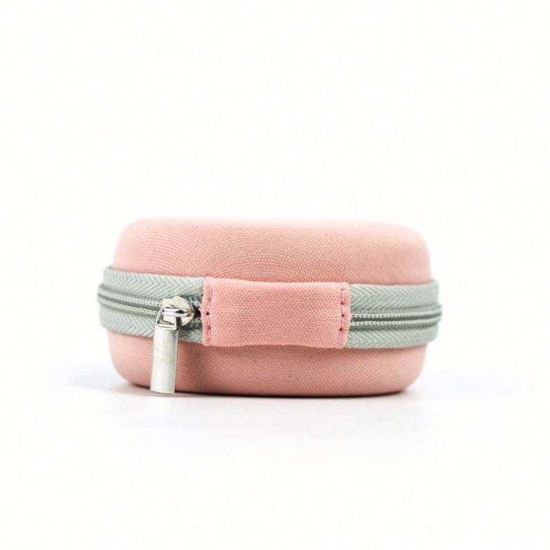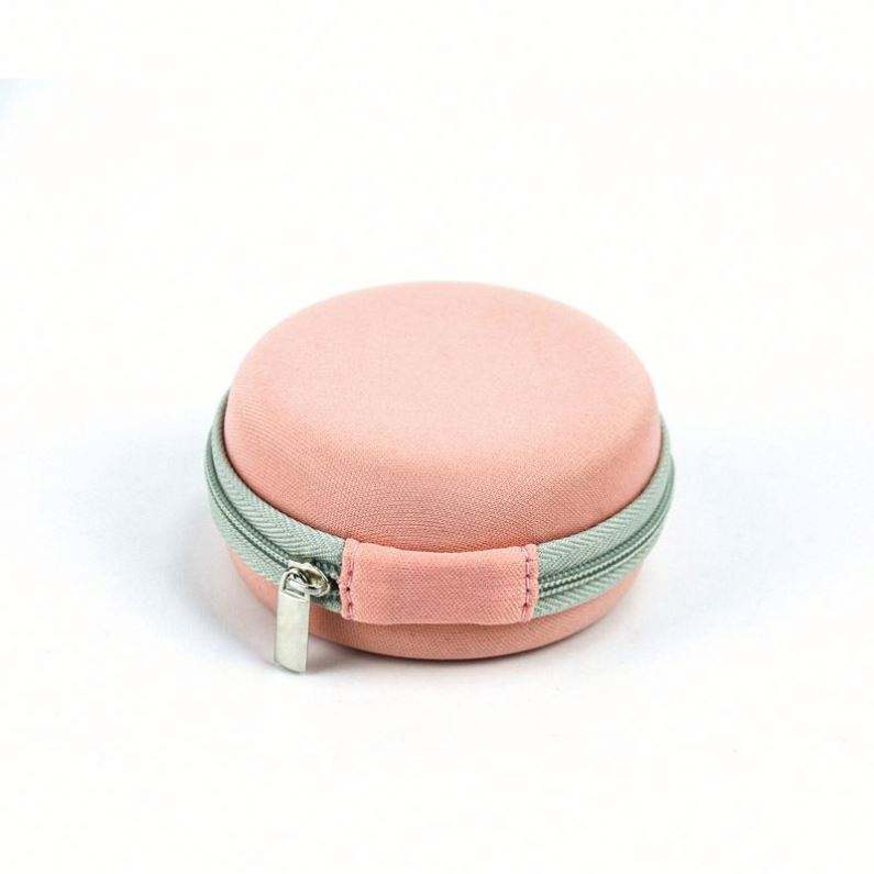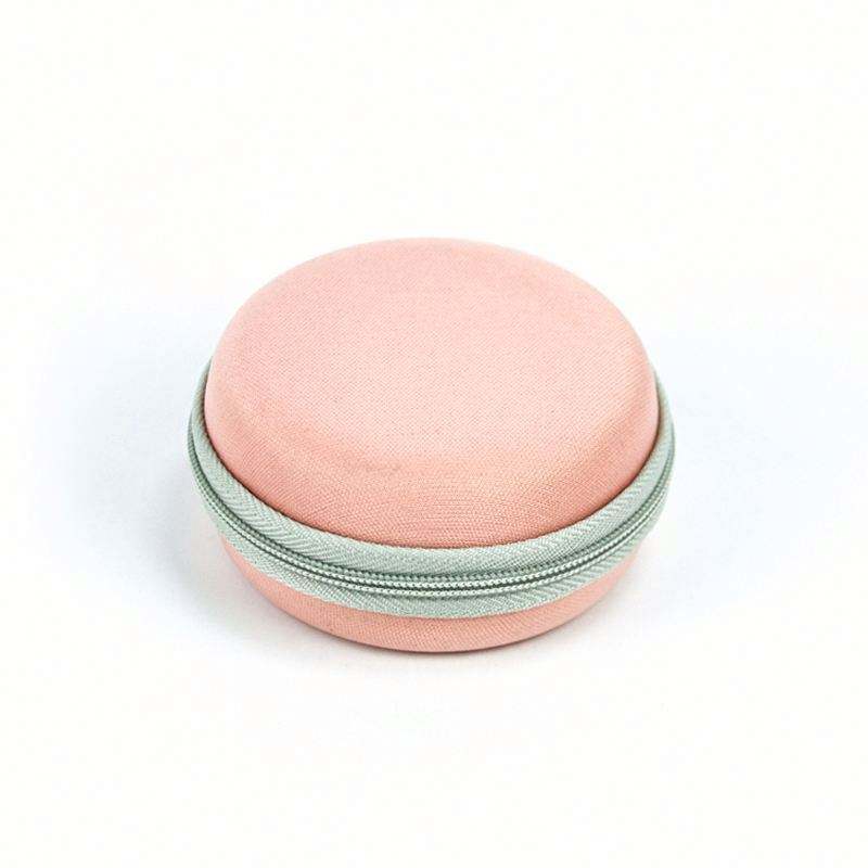 Custom Small Round Shape EVA Earphone Case Travel Portable EVA Earbud Pouch Bag Pink Cute EVA USB Charger Cable Case