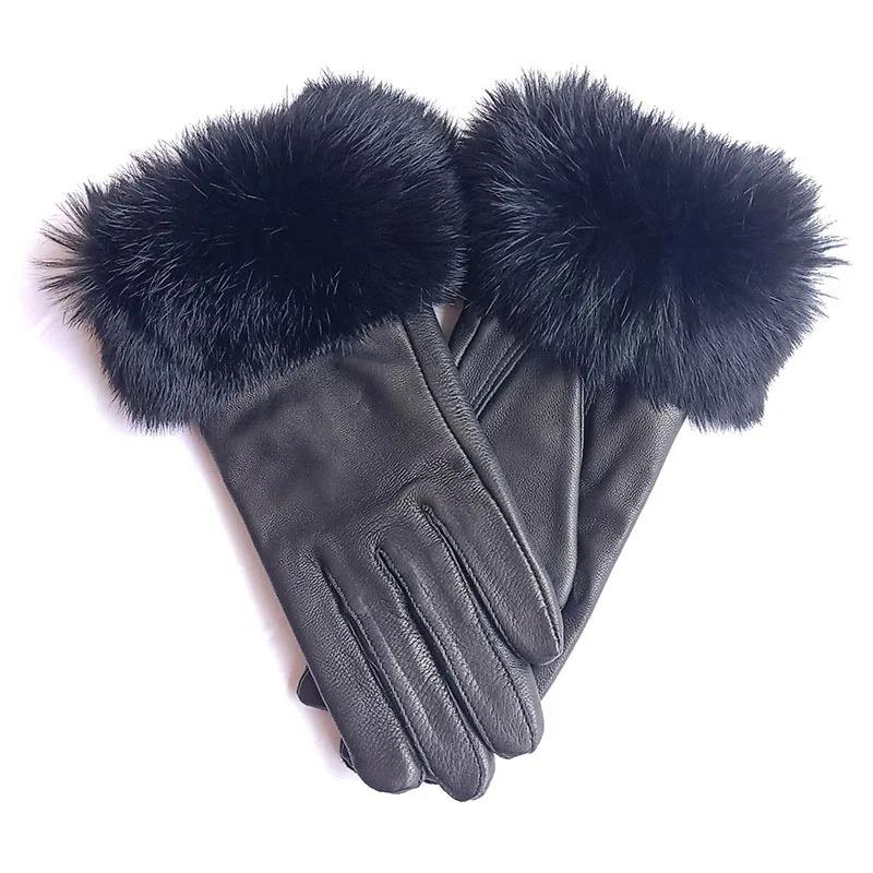 Custom Solid Color Winter Fashion Style Outdoor lady Gloves Full Finger Warm Leather Winter Gloves