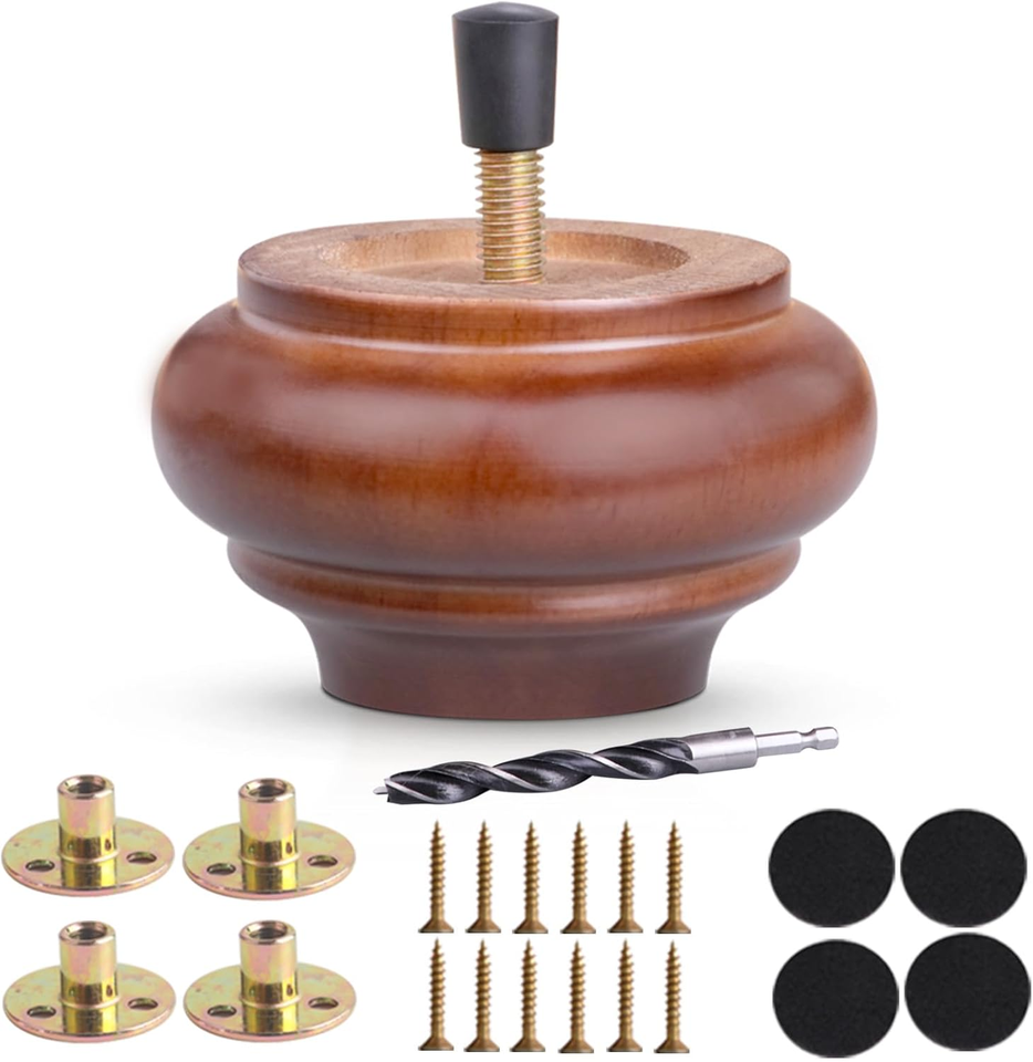 Custom Solid Hardwood Bun Feet for Furniture Short Durable Wooden Sofa Leg Replacement for Bench Heavy-Duty for Living Room